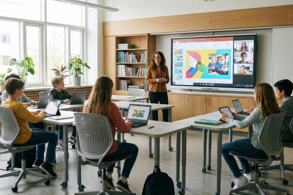 O mesmo movimento acontece na educação. Salas de aula que combinam tecnologia de projeção, colaboração em tempo real e sistemas fáceis de operar estão transformando a experiência de aprender — tanto para o aluno quanto para o professor que não quer virar técnico de TI toda vez que precisar compartilhar uma tela.